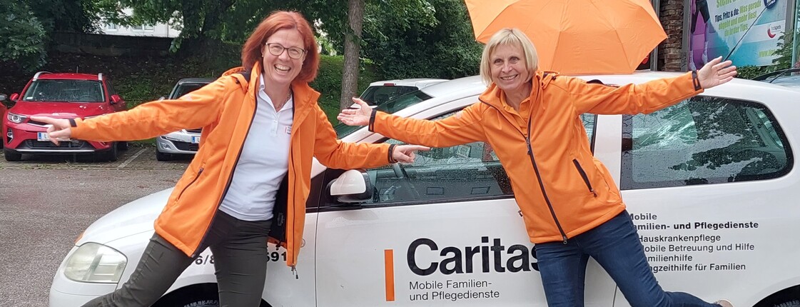 Im Bezirk Grieskirchen sind Karin Malzer und Josefa Kapsammer als Teamleiterinnen für die 53 Mitarbeiter*innen der Mobilen Pflegedienste zuständig und erklärt: „Auch wenn jede*r Mitarbeiter*in alleine zu den Menschen unterwegs ist, sind wir ein dynamisches und motiviertes Team. Wir stärken uns gegenseitig, sind füreinander da und wachsen miteinander. Jede Person bringt ihre individuellen Stärken und Fähigkeiten ein, arbeitet selbständig und eigenverantwortlich. So gelingt es uns, dass wir mit Professionalität und Gespür unsere Arbeit machen.“