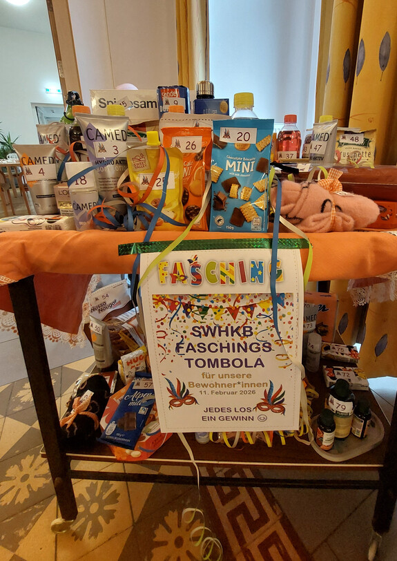 Ein besonderes Highlight war die Faschingstombola: Das Schönste daran – jedes Los war ein Gewinn! So durfte sich jede und jeder über eine kleine Aufmerksamkeit freuen. Ob leckere Snacks, feine Kekse oder erfrischende Getränke – mit einer netten Erinnerung im Gepäck ging es gut gelaunt zurück in die Zimmer.