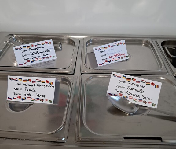 Unterschiedliche nationale Speisen und eine Vielfalt von Desserts wurden zubereitet. Bei allen gab es ein unübersehbares Strahlen in den Augen, denn jeder freute sich darüber einen Beitrag leisten zu können und durch das mitgebrachte Essen seine Nation, seine Herkunft präsentieren zu können. Nicht nur die landestypischen Speisen wurden vorgestellt, sondern auch die Geschichte des Landes, wobei der Stolz über die jeweilige Herkunft zu spüren war.