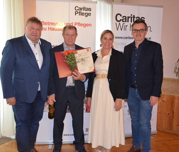 Für die Caritas der Diözese St. Pölten war Regionalleiterin Manuela Klopf, Einsatzleiterin Bettina Salzger sowie die beiden stellvertretenden Einsatzleiterinnen der Sozialstation Alpenvorland Cornelia Wenninger und Birgit Willhalm mit dabei. „Der Dienst Essen auf Rädern ist ein gelungenes Beispiel dafür, wie ehrenamtliches Engagement und Gemeinschaftssinn Hand in Hand gehen, zum Wohl aller, die Unterstützung brauchen.“, so Klopf dankbar.