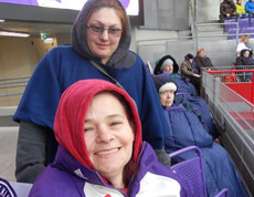 Die Bekleidung wurde dem Event entsprechend ausgesucht, warme Decken vorbereitet und natürlich Fanartikel an den Rollstühlen befestigt. Denn heute ist für alle ein besonderer Tag. Endlich geschafft, Abfahrt um 16.00 Uhr!
